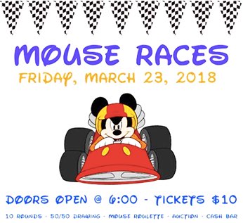 A heartfelt "THANK YOU" and shout out to all who made the Mouse Races a HUGE success! We sold out of sponsorship ads and had a full house for the dinner and races! The outpouring of support was truly humbling!